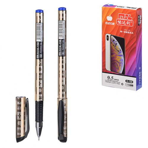 Ручка гелевая " Basir " синяя 0,5мм, толщина письма 0,25мм, игольчатый наконечник, рифленый держатель, корпус золотого цвета, картонная упаковка