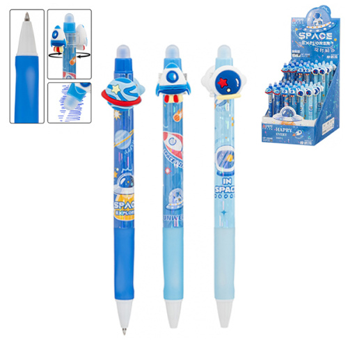 Ручка пиши-стирай автоматическая " Basir " гелевая 0,5мм синяя, цветной корпус с рисунком, насадка-спиннер Космос, ассорти, картонный дисплей