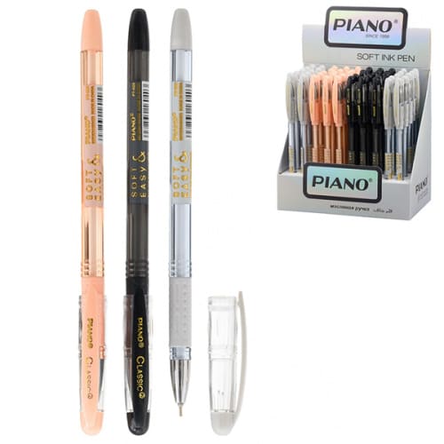 Ручка шариковая " Piano " синяя 0,5мм, толщина письма 0,25мм, цветной резиновый держатель, игольчатый пишущий узел, чернила на масляной основе, металлический наконечник, цветной тонированный корпус, дисплей