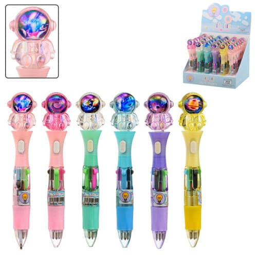 Ручка- мини шариковая автоматическая " Basir " Космонавт 4цв 0,5мм, прорезиненный наконечник- космонавт, цветной корпус