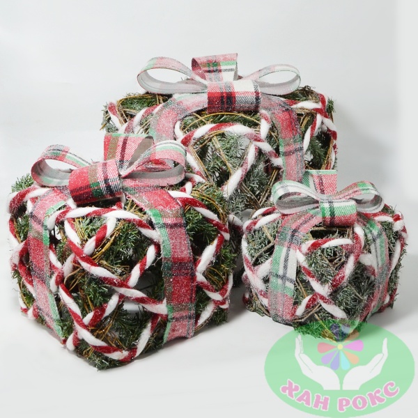 Набор декоративный плетеный "Подарок " 3в1 26х26х25 см "цветной" (1шт) Н3-42