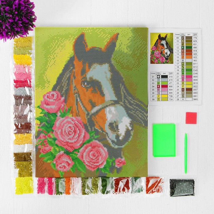 Алмазная мозаика с полным заполнением на подрамнике «Лошадь», 30 х 40 см. Набор для творчества
