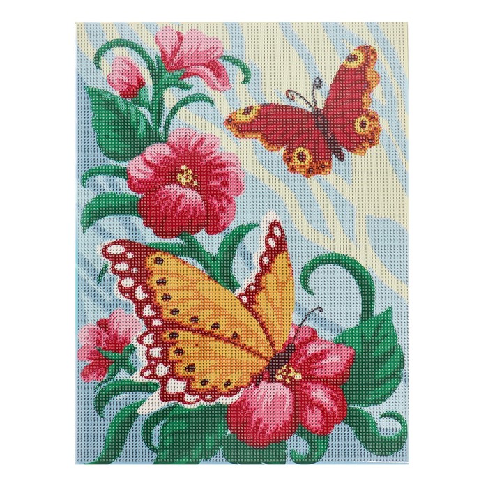 Алмазная мозаика на подрамнике с полным заполнением «Бабочки на цветах», 30х40см