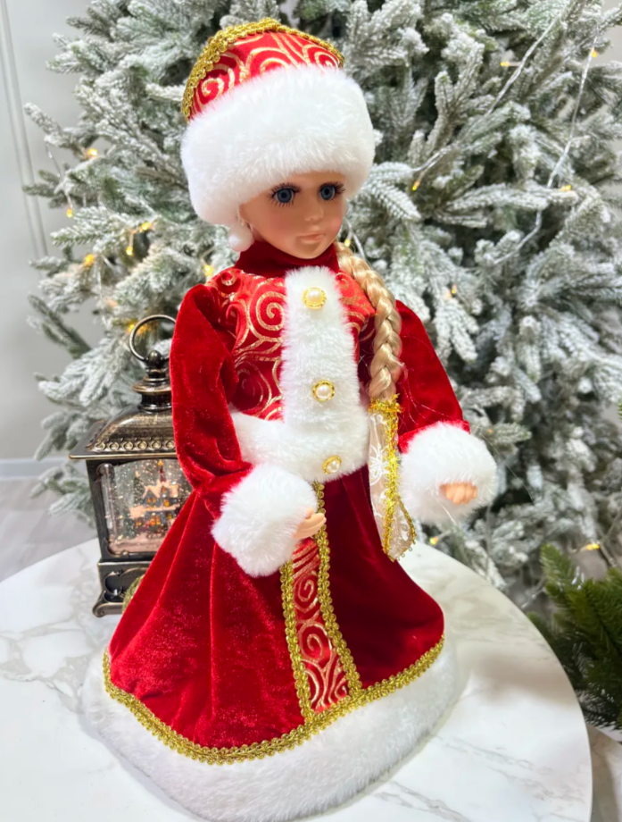 Снегурочка электрическая 310мм красная одежда танцует и поет песенку OMAKS DB77-12 в картонной упаковк