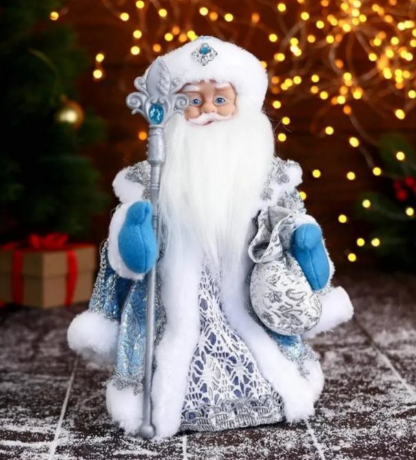 Дед Мороз электрическая 310мм голубая одежда танцует и поет песенку OMAKS 20A01-12 в картонной упаковке