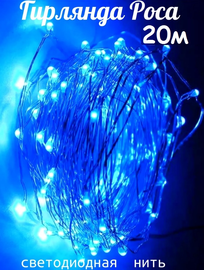 Гирлянда электрическая 200ламп 20м "Роса" синяя OMAKS P-10 в блистере
