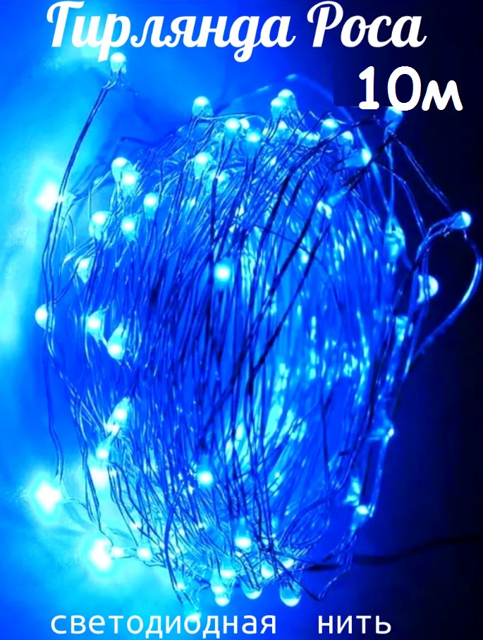 Гирлянда электрическая 100ламп 10м "Роса" синяя OMAKS P-9 в блистере