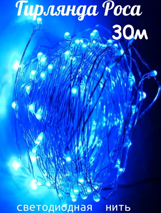 Гирлянда электрическая 300ламп 30м "Роса" синяя OMAKS P-126 в блистере