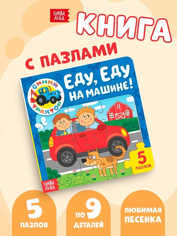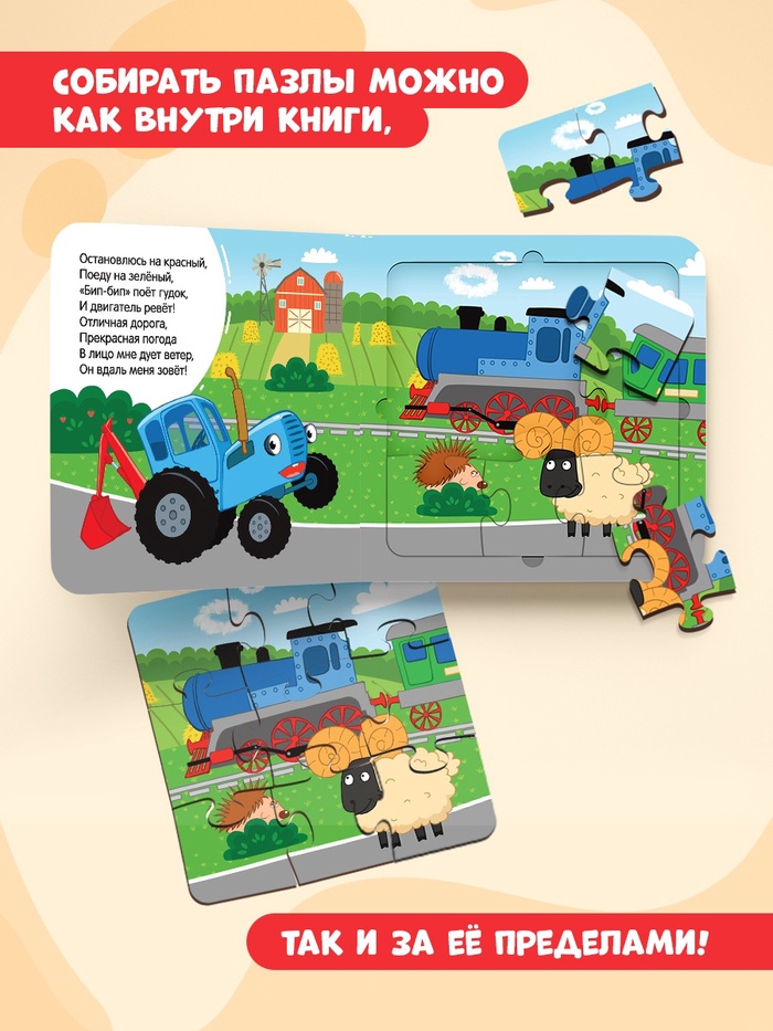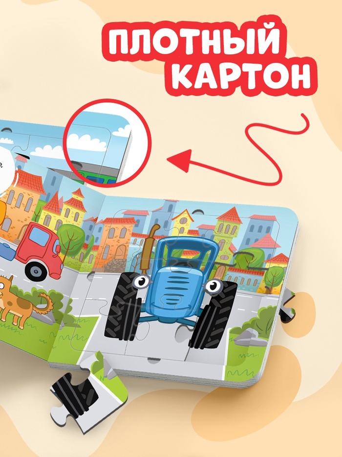 Книга картонная с пазлами "Еду, еду на машине!", Синий Трактор, 12 стр. 7291859