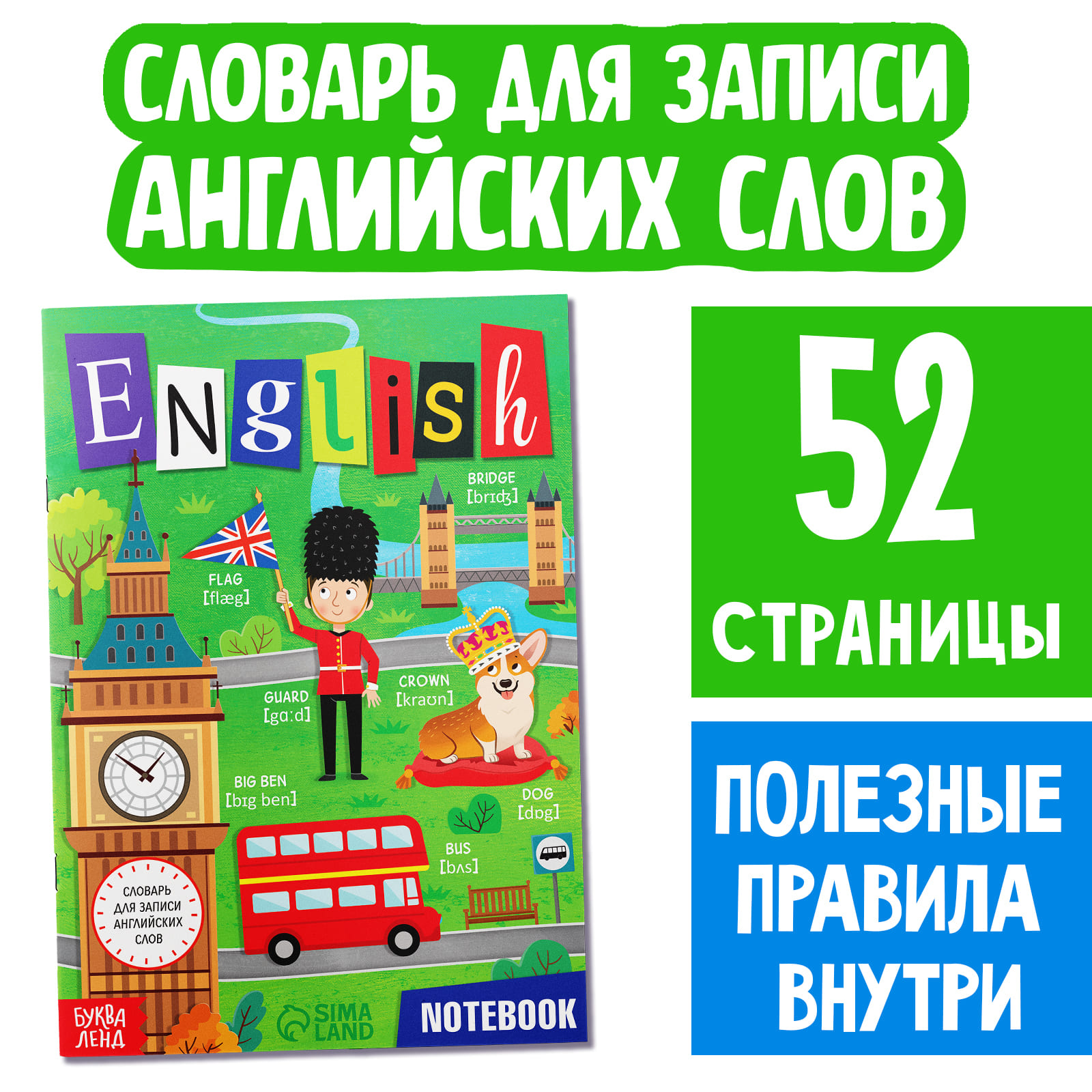 Словарь для записи английских слов "English notebook", 52 стр. 7331777