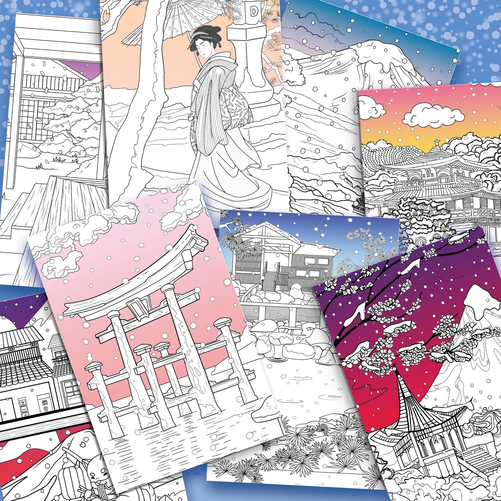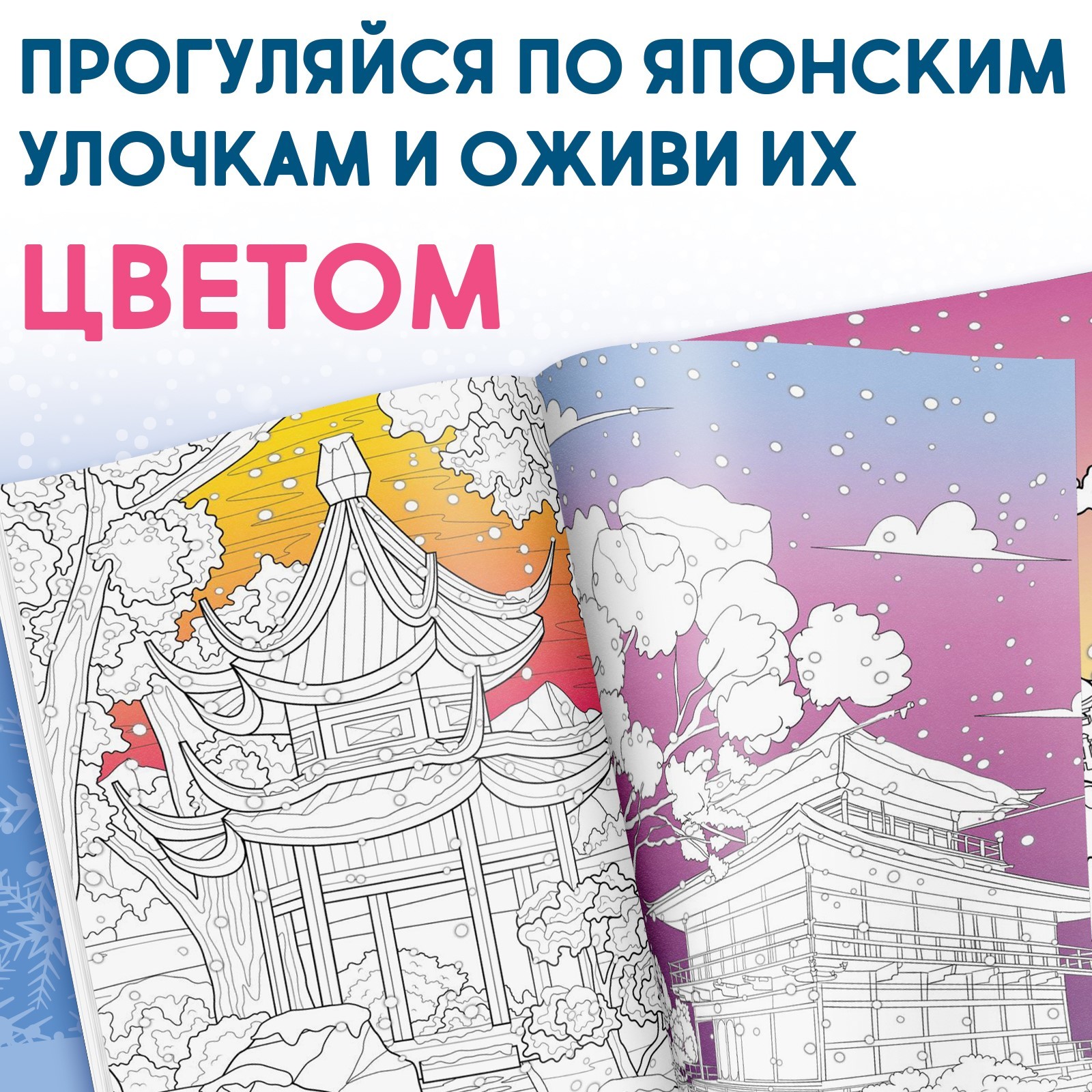 Японская раскраска "Погрузись в зимнюю сказку", 25 картинок 10679221