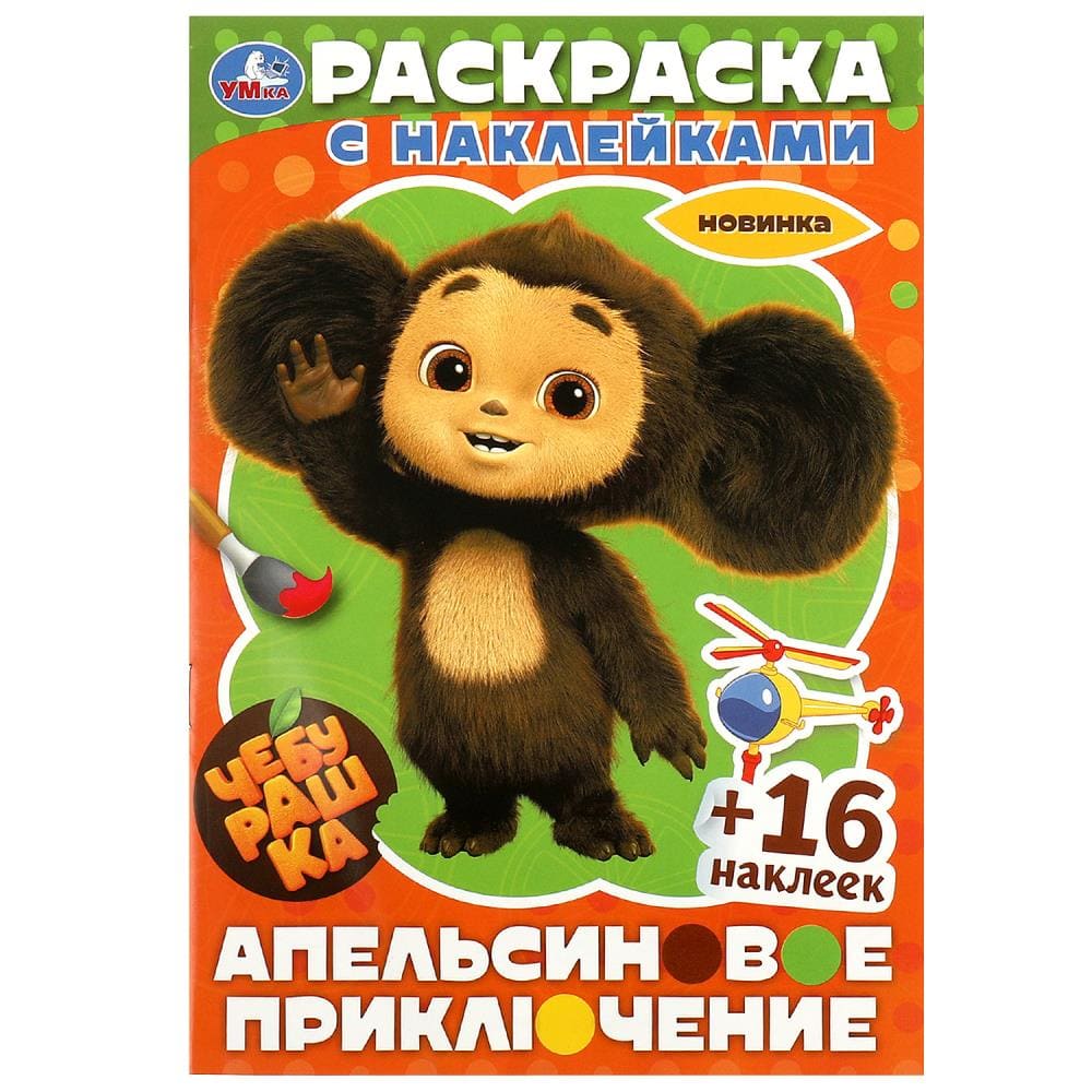 Раскраска с наклейками. 16 стр.+16 наклеек. Чебурашка. Апельсиновое приключение. Умка в кор.100шт
