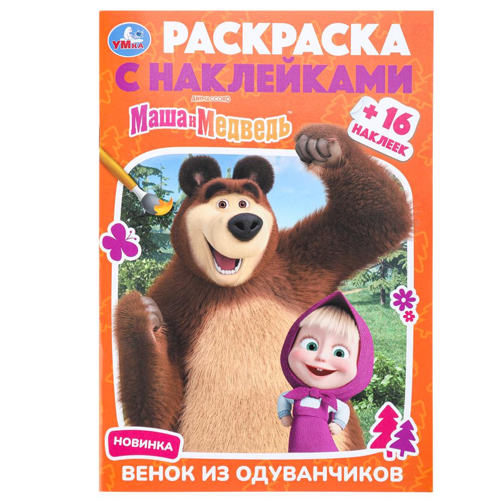 Маша и Медведь. Венок из одуванчиков. Раскраска + 16 наклеек. 145х210 мм. 16 стр. Умка в кор.100шт