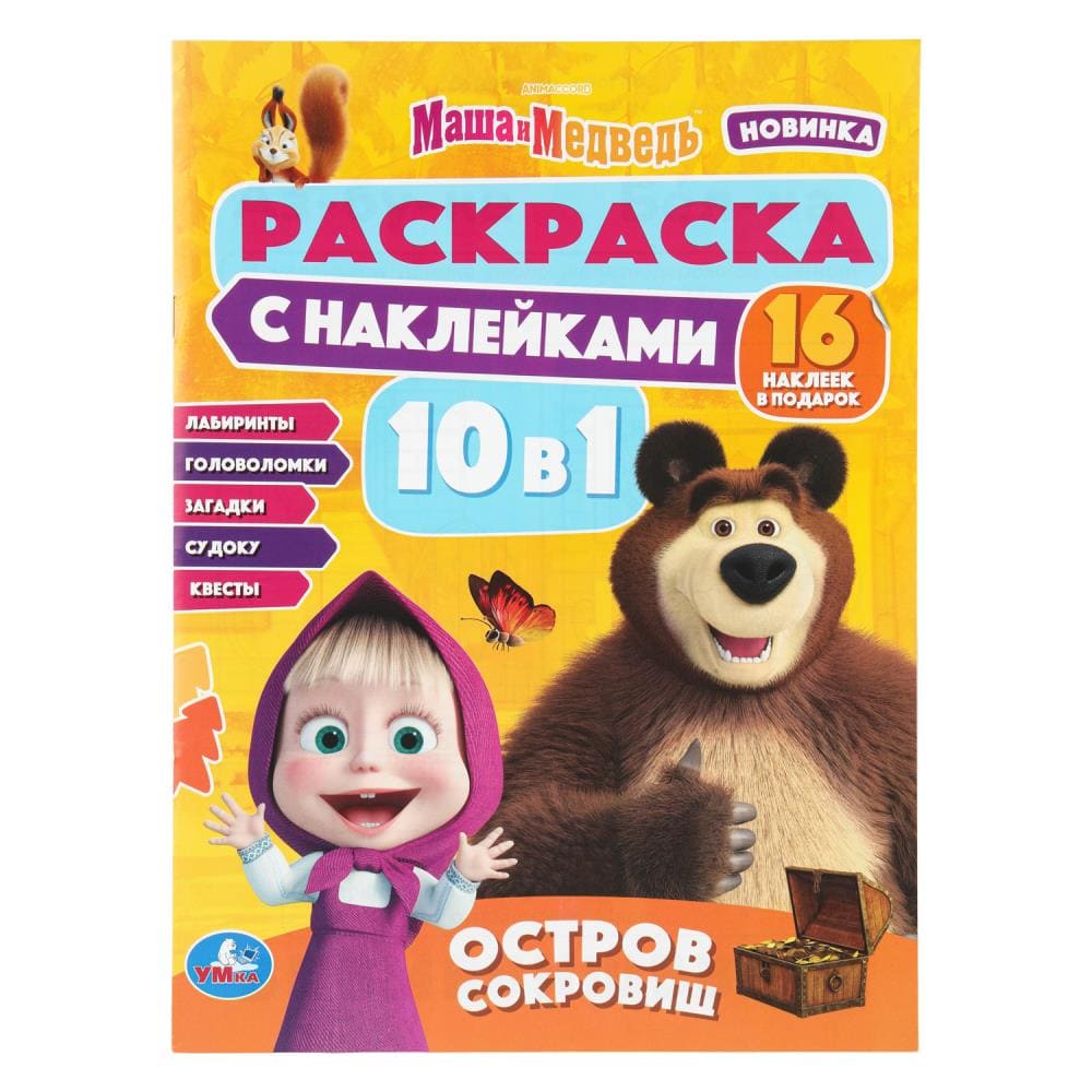 Остров сокровищ. Маша и Медведь. Раскраска с наклейками. 214х290 мм. 12 стр. Умка в кор.50шт
