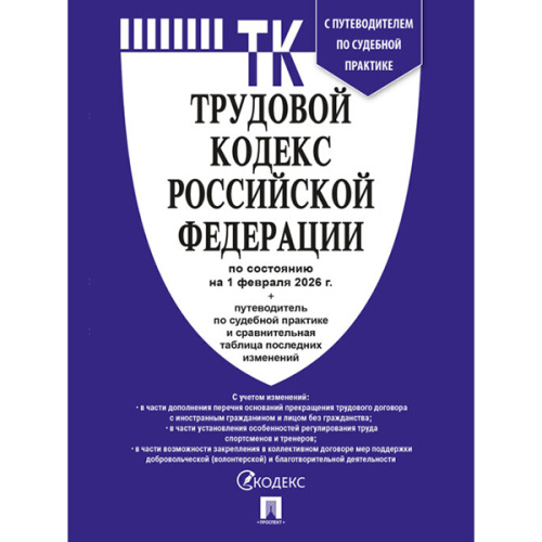 Трудовой кодекс РФ по состоянию на 01.02.2026 А5 320стр, с таблицей изменений и с путеводителем по судебной практике, обложка - бумага, сшивка