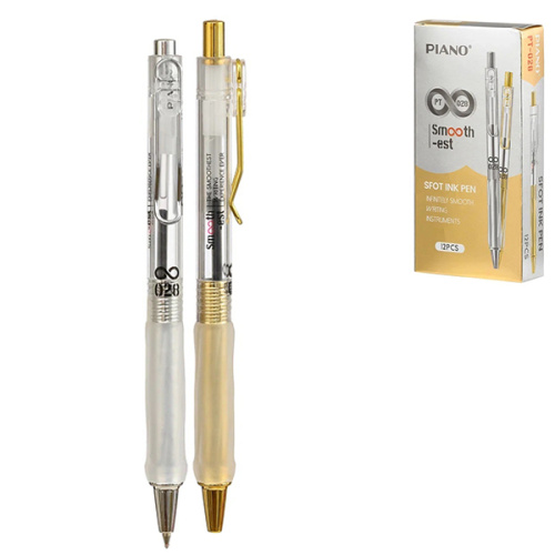 Ручка шариковая автоматическая " Piano " синяя 0,5мм, резиновый держатель, чернила на масляной основе, металлический наконечник, клип, цвет корпуса - ассорти (прозрачный-золото, прозрачный-серебро), картонная упаковка
